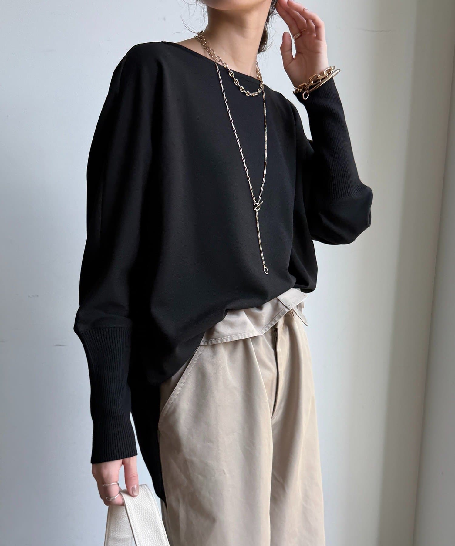DOUDOU(ドゥドゥ) レディース ジョーゼットドッキングプルオーバー ブラック