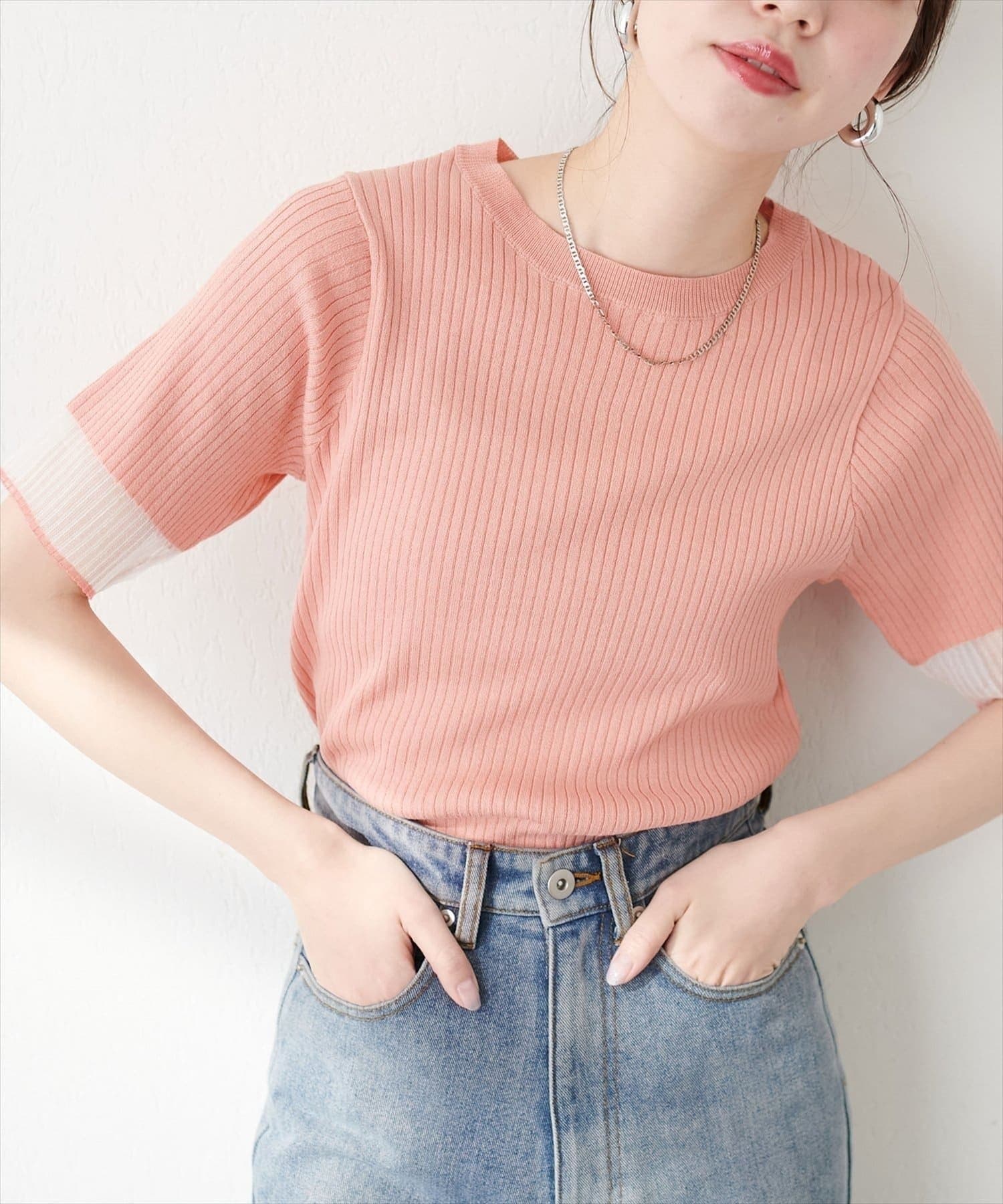 NICE CLAUP / OLIVE des OLIVE OUTLET(ナイスクラップ / オリーブ デ オリーブ アウトレット) レディース 【natural couture】袖口シアー強撚リブニット ピンク