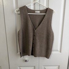 Becool Brown Wool Blend Ribbed Sleeveless Button Up Vest Womens Size Large Boho