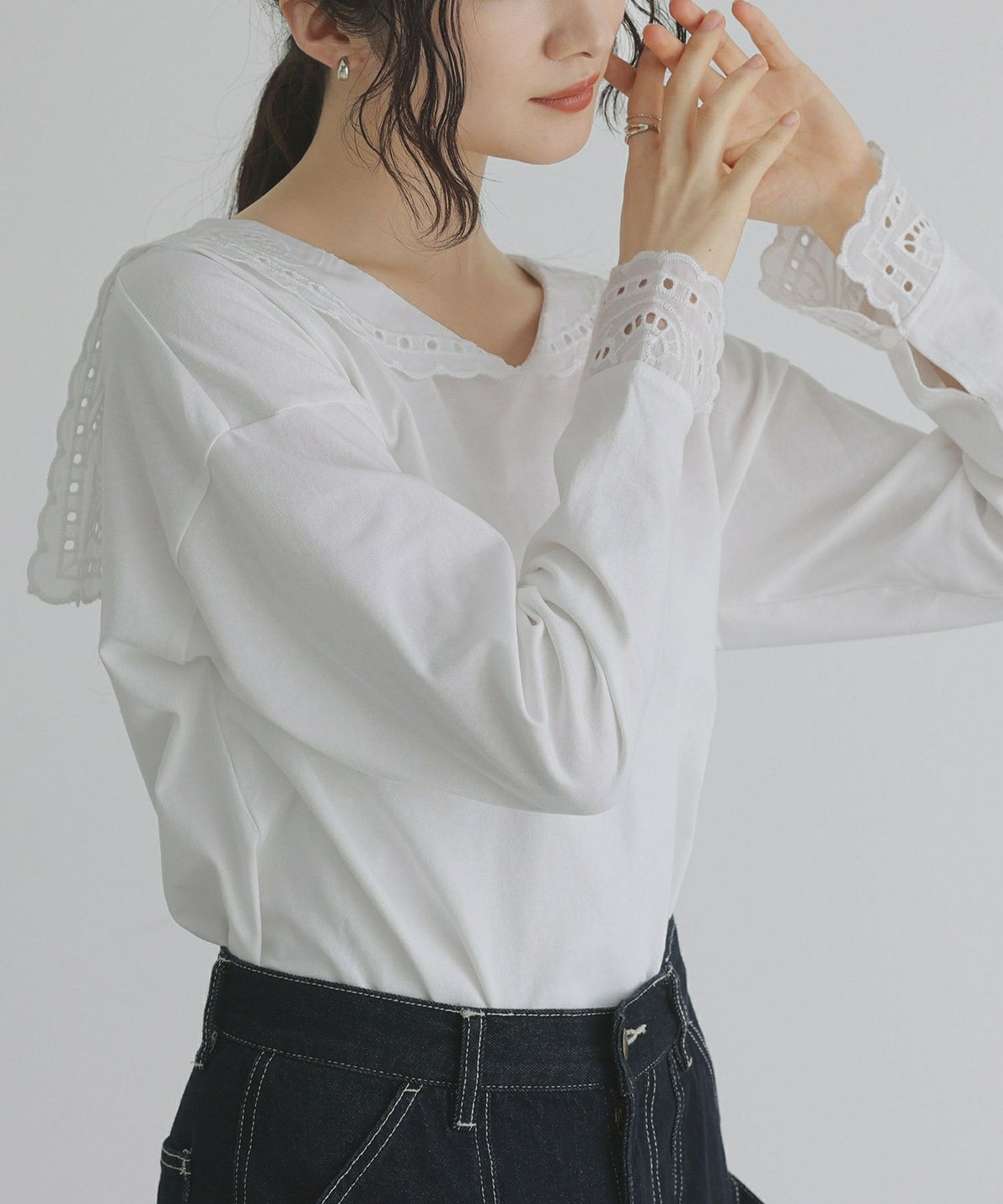 レースセーラーカラーカットソー 1(M~L) オフホワイト