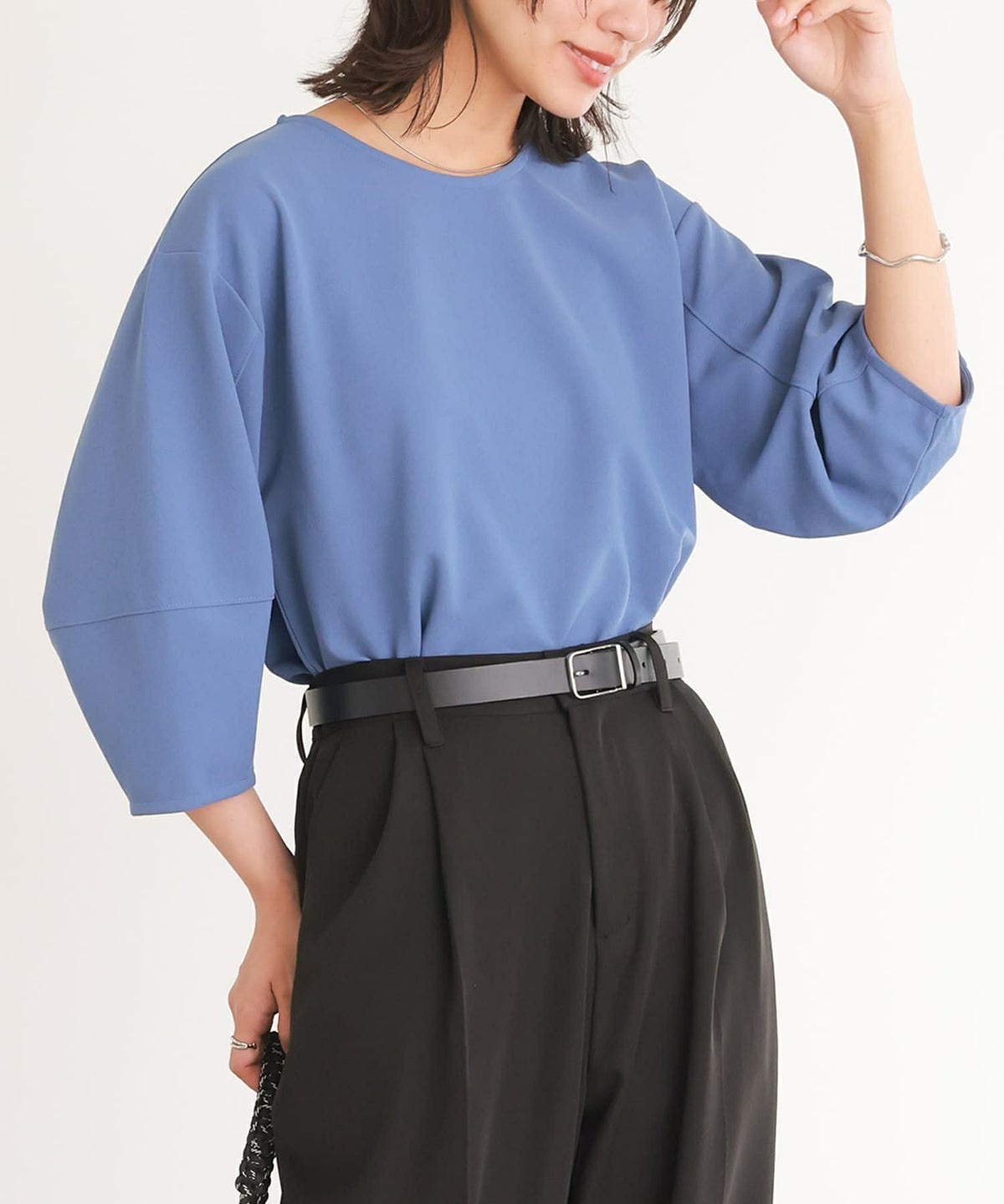 七分袖ランタンスリーブカットソー 1 スモーキーブルー