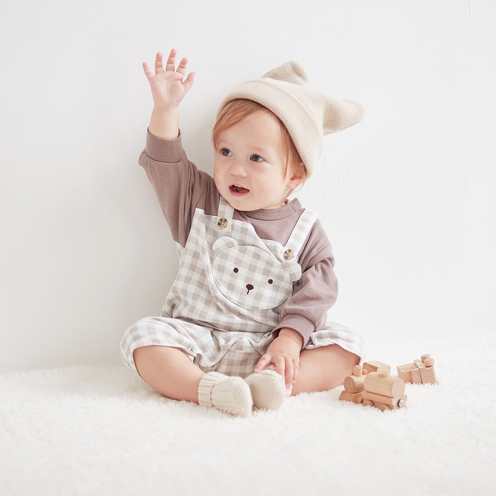 【ベルメゾン】アニマルかわいいギンガムチェックカエルロンパース 【ベビー服 長袖】