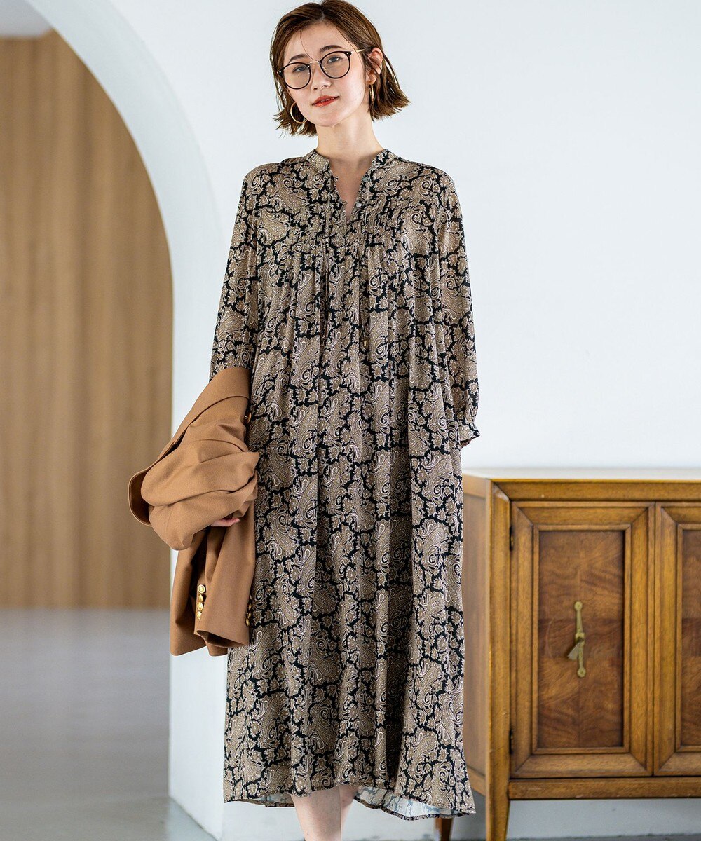 【オンワード】 23区>ワンピース 【洗える】Ratti ヴィンテージペイズリープリント ワンピース モノトーンプリント 38 レディース