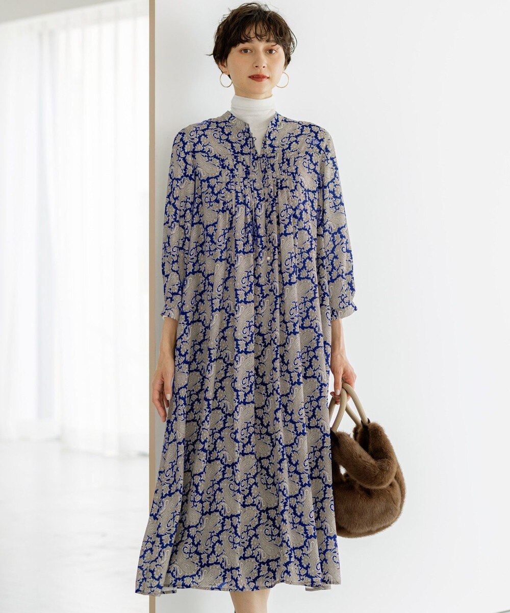 【オンワード】 23区>ワンピース 【洗える】Ratti ヴィンテージペイズリープリント ワンピース ブループリント 38 レディース