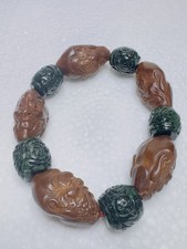 缅甸干青翡翠A核雕罗汉手串