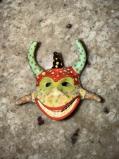 Handmade Folk Art Ceramic Mask – Devil/Monster Face – Painted Pottery Wall Decor