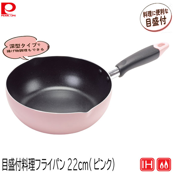 パール金属 ふっ素加工IHタイオウ目盛付料理フライパン22cm(ピンク) HC-0067
