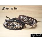 ブレスレット 百合の紋章 フレア レザー 本革 シルバー きれいめ V系 バイカー Rock サーフ アメカジ ロック ストリート