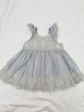 Baby Gap Girl Blue And White Stripped Dress With Lace Trim
