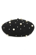 TASHA BERET WITH FAUX PEARLS BLACK OS NWOT