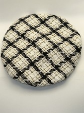 Womens M/L Beret Hat Black & White with Gold Thread Lined 51cm