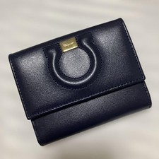 Salvatore Ferragamo Navy Leather Bifold Wallet Near Mint Condition Japan