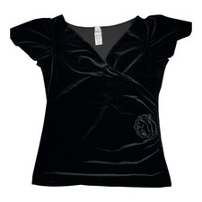 Aqua Womens L Black Knotted V Neck Casual Knit Top Stretch Blouse
