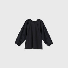 A New Day 3/4 Puff Sleeve Mixed Poplin Round Neck Blouse Black Womens S NWT