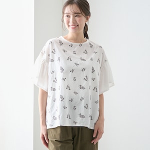 【ベルメゾン】袖フレア刺しゅうブラウス