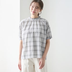 【ベルメゾン】綿素材のハイネックシャーリングブラウス