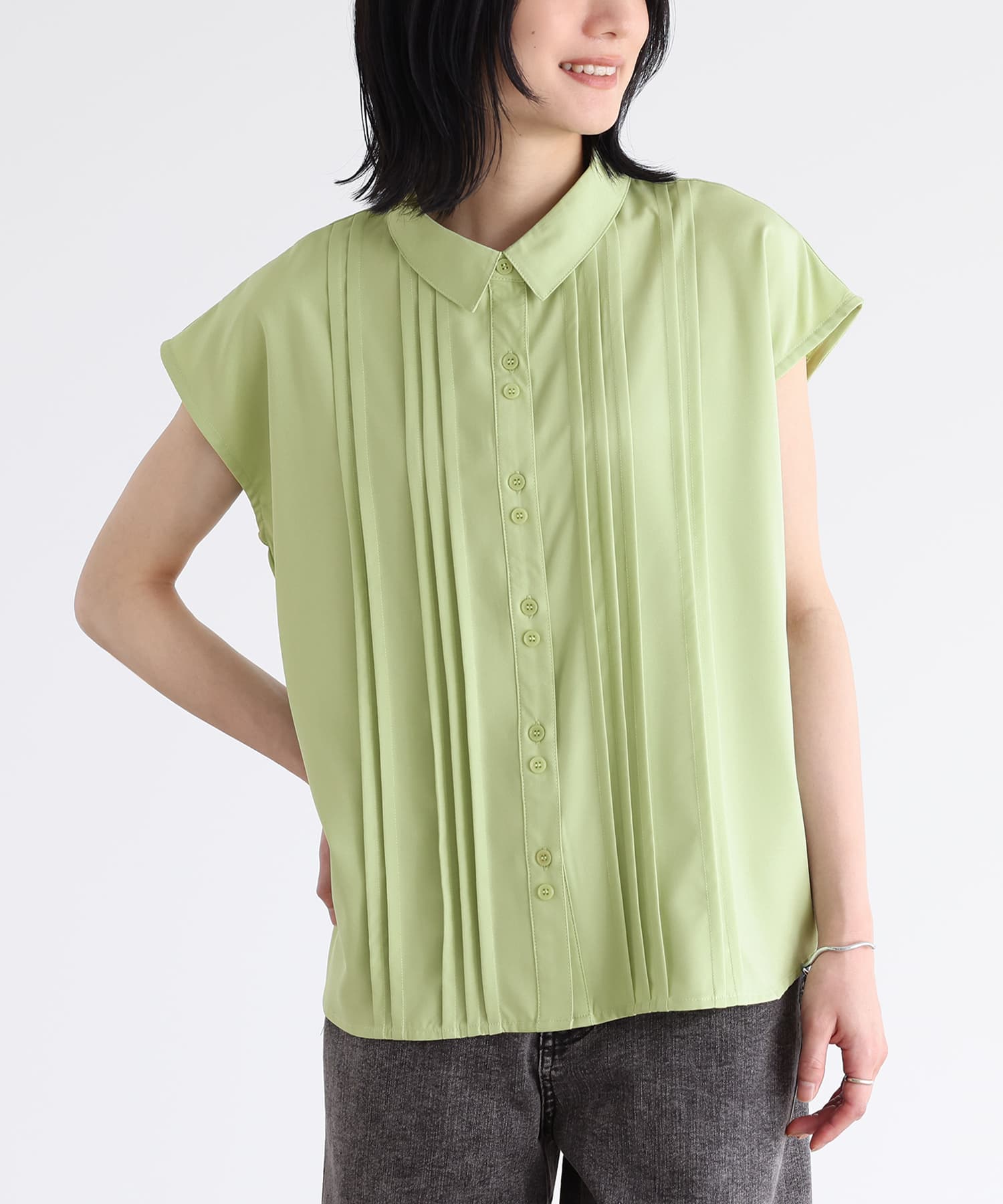 ピンタックフレンチスリーブブラウス※メール便可※【10】【SALE】 1(M~L) ライトグリーン