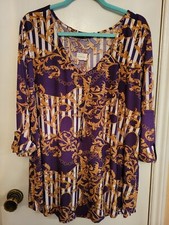 Womens 3XL Ashley Top Blouse W/ Necklace Purple/brown/chains NWT Cute