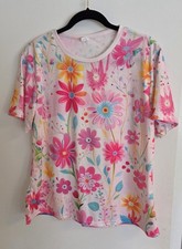 Womens Loose Fit Short Sleeve T-Shirt Blouse Basic Soft Tunic Top XL Pink Floral