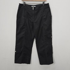 Coldwater Creek Crop Cargo Pants 14 Black High Rise Pockets Zip Up Cotton Blend