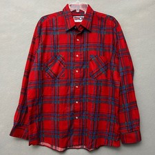 American Edition Flannel Shirt Mens L Red Plaid Long Sleeve Cotton Made in USA