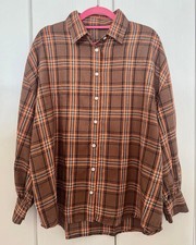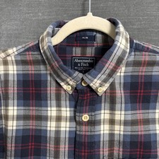 Abercrombie Fitch Shirt S Slim Fit Blue Brown Plaid Button Down Flannel Casual