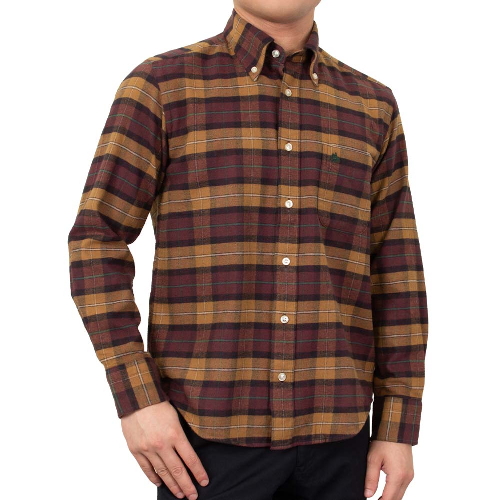 【POLO B. C.S.】/カジュアルシャツ/綿100%/BROWN/POLO BCS ポロビシーエス 綿100% コットン 長袖 ワイシャツ カジュアルシャツ ツイル起毛 ボタンダウン ブラウン-M