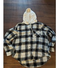 Womens Plaid Flannel Shirt Hoodie Long Sleeve Casual Top