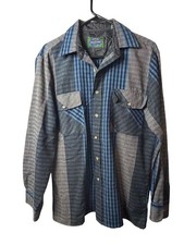 Plaid Flannel Shirt Western Style Snap Up Mens Flap Chest Pockets With Pen Slot!
