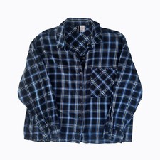 Plaid Oversized Boyfriend Shirt XS/S Blue Black Button-Up 90s Grunge Cozy Casual