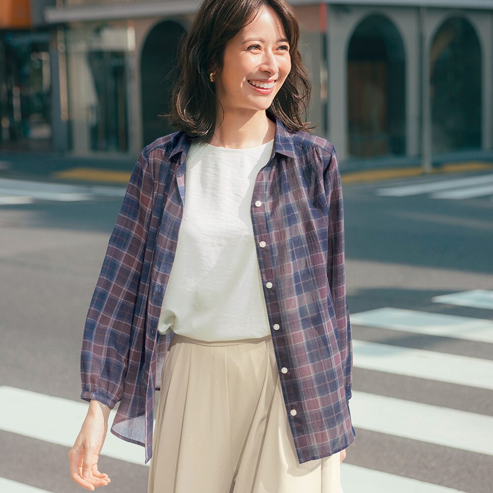【ラ・フィット/la*fite】シアーチェックギャザーシャツ