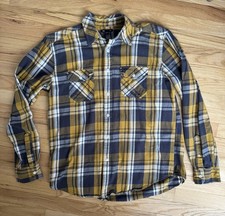 Gap Men’s L Reg Fit Long Sleeve Button Down Yellow And Blue Patterned Flannel
