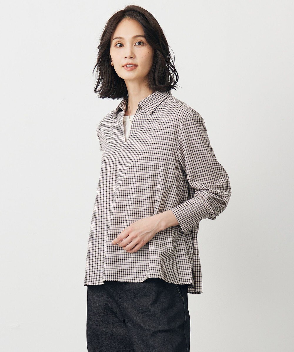 【オンワード】 J.PRESS LADIES S(小さいサイズ)>トップス 【洗える】SHEER ギンガム スキッパー ブラウス オフ×ブラック P5 レディース