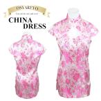コスプレ チャイナドレス チャイナ服 コスチューム ピンク 花柄 チャイナ衣装