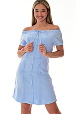 Ladies Lt. Blue 100% Soft Linen Traditional (4) Pocket Guayabera Dress -LLGD3011