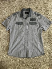 Men’s Marc Ecko Cut & Sew Short Sleeve Gray Button Up Size M