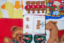 Cut and Sew Fabric Panel Lot of 7 Bearable Week Christmas Reindeer Bear Ducks