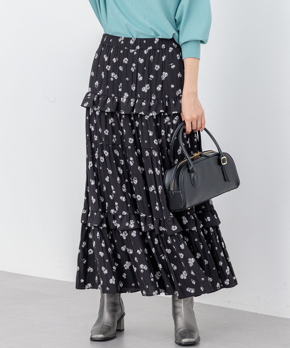 【オンワード】 組曲>スカート 【加藤ローサさん着用 / レングス調整可能】ギャザーライトデシンティアード スカート ブラック 1 レディース