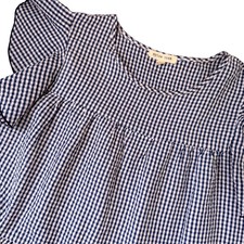 Blue Gingham Tiered Top Flutter Sleeves Summer Cottagecore Prairie Girly Large