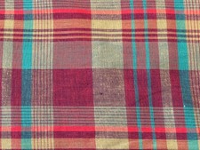 By 1/2 Yd Dark Red Yellow Green Plaid Check Cotton Fabric BTHY Woven Vintage