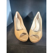Via Spiga Peep Toe Heels Tan Patent Leather Pumps Shoes Size 9M