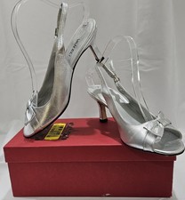 Van Eli Vaneli Lorilyn Silver Metallic Open Toe Slingback Heels Pumps w/Bow 9.5N