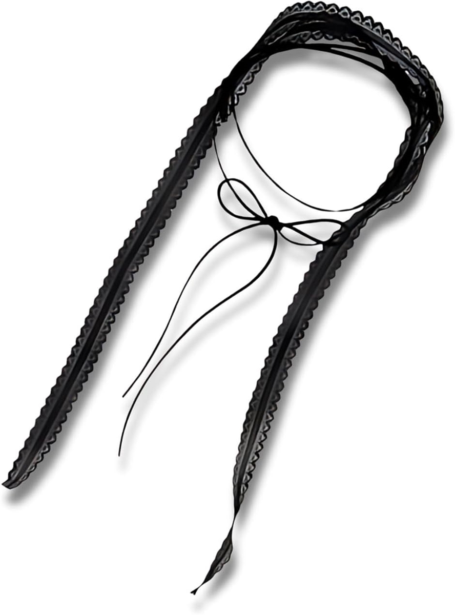 チョーカー 黒 レディース ネックレス 紐 地雷系 量産型 韓国 アクセサリー リボン (紐&レース ブラック, ロング)