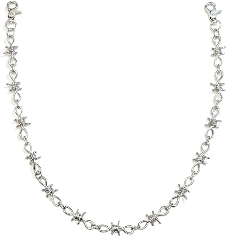 ウォレットチェーン トゲトゲ 有刺鉄線 メンズ シルバー(シルバー, Free)