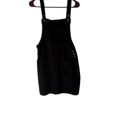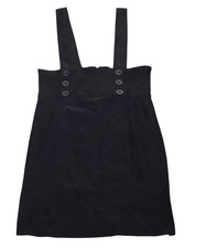 Black Corduroy Pinafore Dress Mini Overall Skirt Buttons Pockets Size M Academia