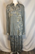 3 Piece Skirt Set Womens L Top Blouse Cardigan Vest Maxi Skirt Floral Paisley