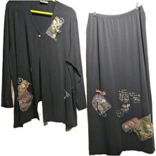 Bread Staley Gretzinger Cardigan Maxi Skirt Set Women XL? Artsy Floral Navy Blue