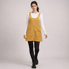 Blue Spice Jumper Dress XL Mustard Yellow Corduroy Pockets Overall Skirt Twee