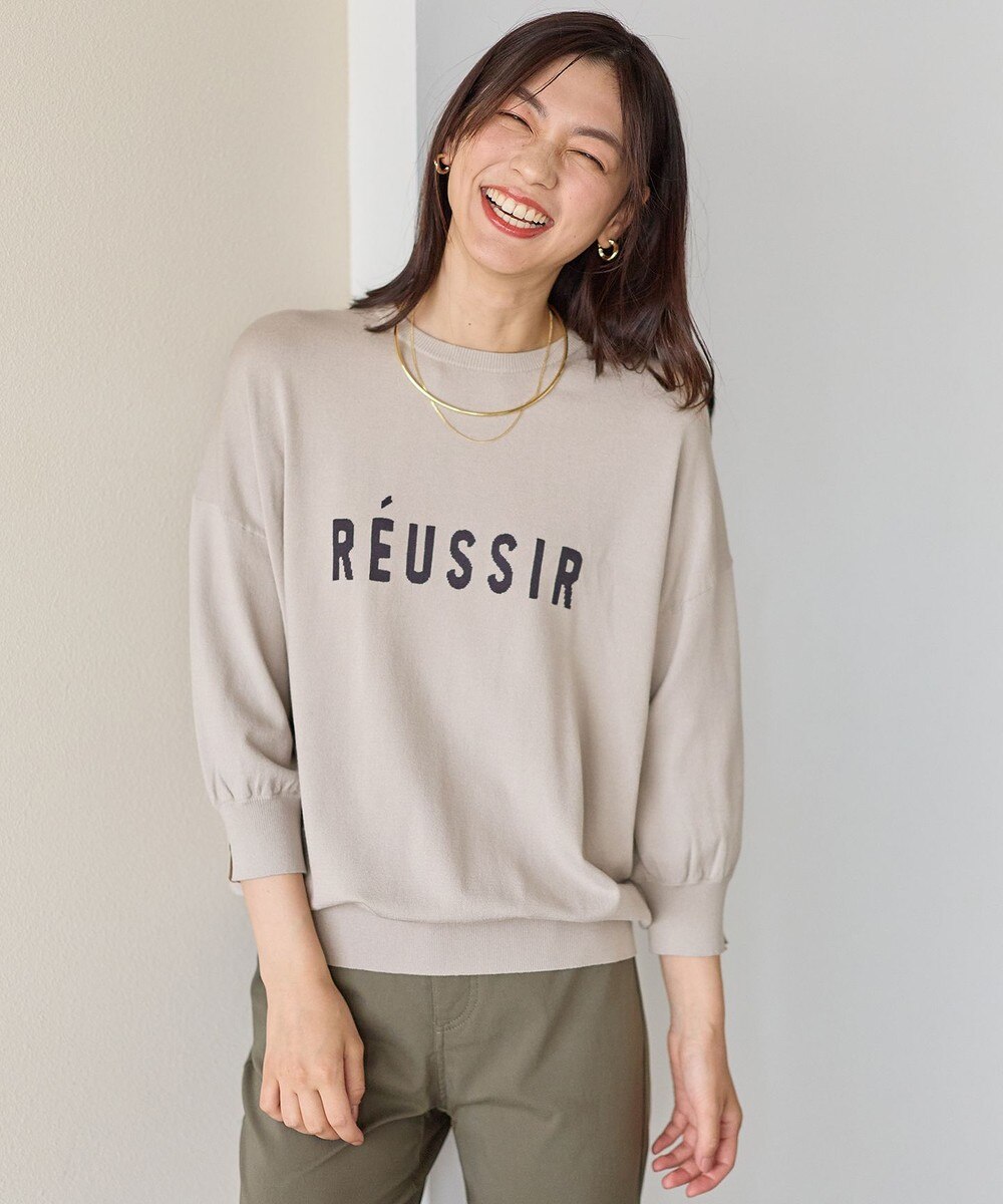 【オンワード】 ANY>トップス インターシャロゴニットプルオーバー ライトグレー×チャコール F レディース