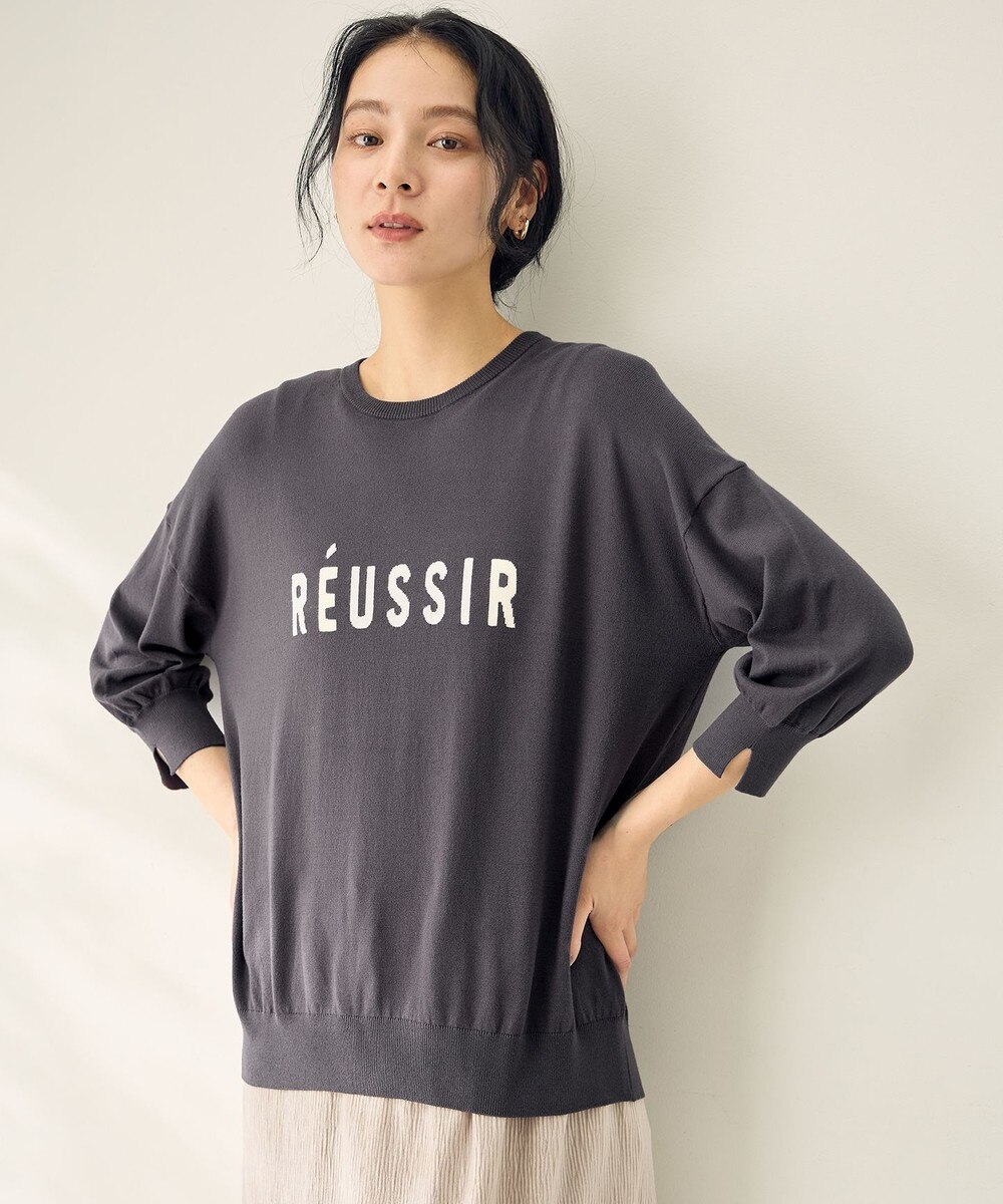 【オンワード】 ANY>トップス インターシャロゴニットプルオーバー スレート×エクリュ F レディース